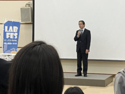 オープニングイベントでは、安井利明 技術支援室 工作支援チーム長が本学を代表して挨拶に立ち、お祝いの言葉を述べました。