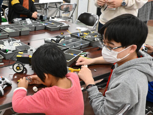 体験コーナーでは、「ロボット操縦体験 ミニロボットを動かしてみよう」(ロボコン同好会)(参加者数:初日、子ども:77名・大人:63名、2日目、子ども:100名・大人:77名)及び「技科大サーキット レゴブロックで作った車を走らせよう」(機械工学系 佐野研究室)(参加者数:初日、子ども:19名・大人:16名、2日目、子ども:45名・大人:42名)を実施しました。